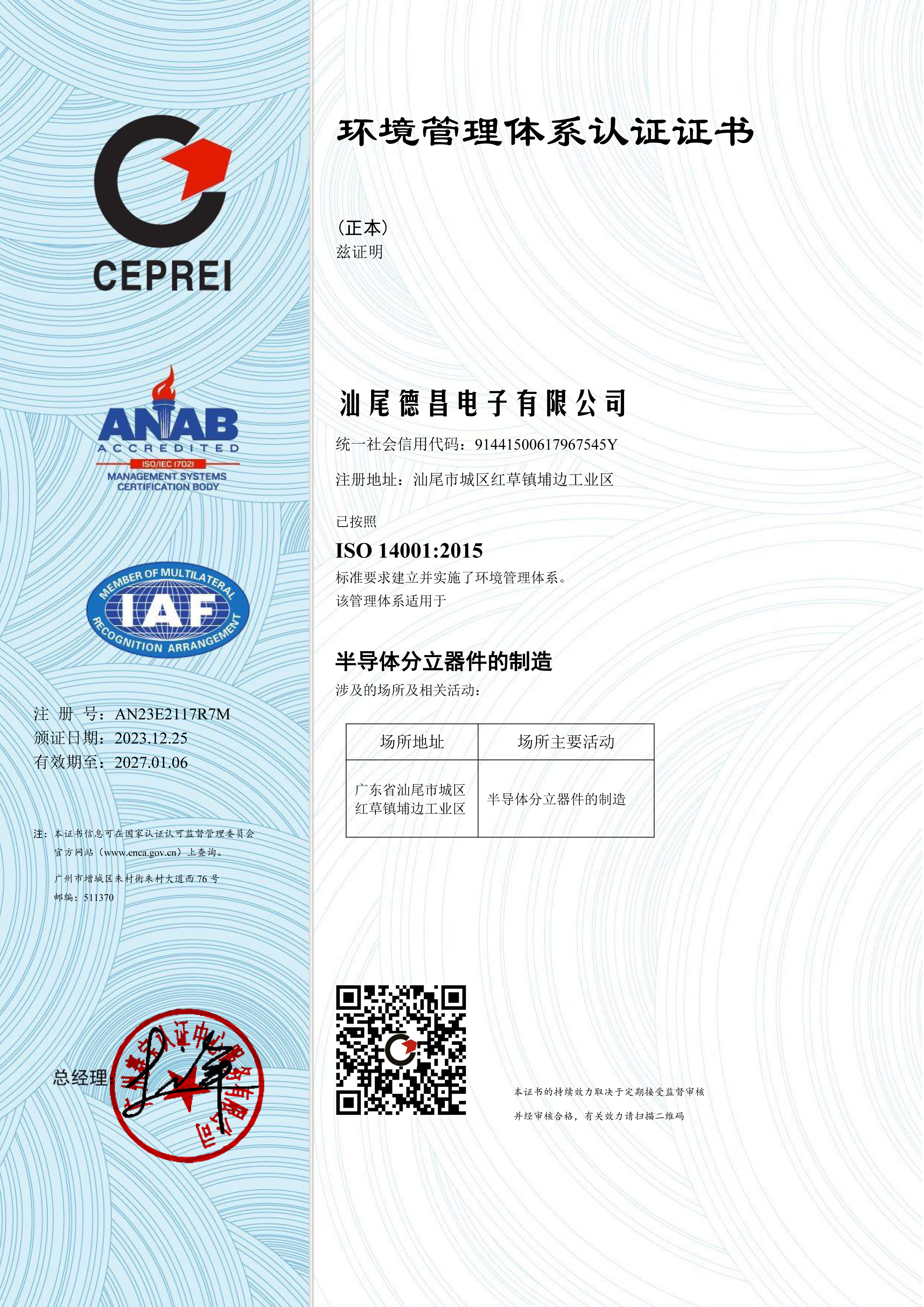 首頁 >> 管理體系 >> 環(huán)境體系 >> 環(huán)境證書