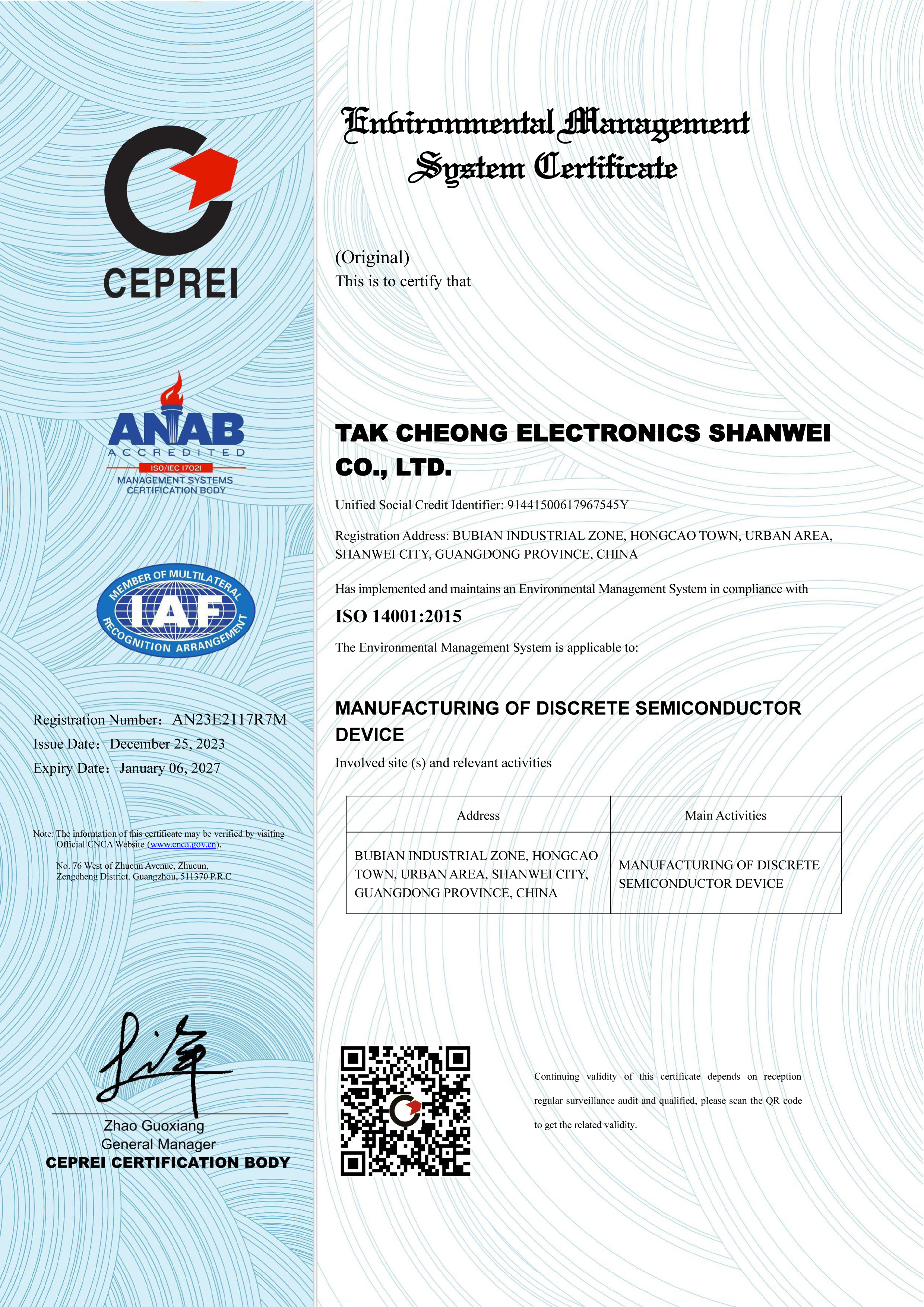 HOME >> MANAGEMENT SYSTEM >> ENVIRONMENTAL SYSTEM >> CERTIFICATE